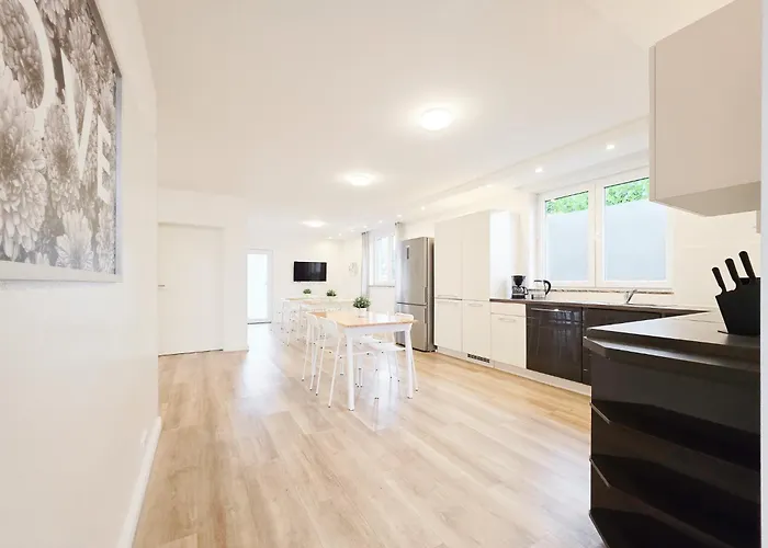 Il Tolstov House - 6 Zimmer Haus - Grosse Kueche - Garten - Parkplatz - 25Min Messe Dus include inolte un angolo cottura attrezzato con una lavastoviglie e un forno. L'aeroporto di Dusseldorf è a 20 minuti d'auto, mentre la fermata dell'autobus Karl-Geusen-Strasse si trova abbastanza vicino al Tolstov House - 6 Zimmer Haus - Grosse Kueche - Garten - Parkplatz - 25Min Messe Dus.